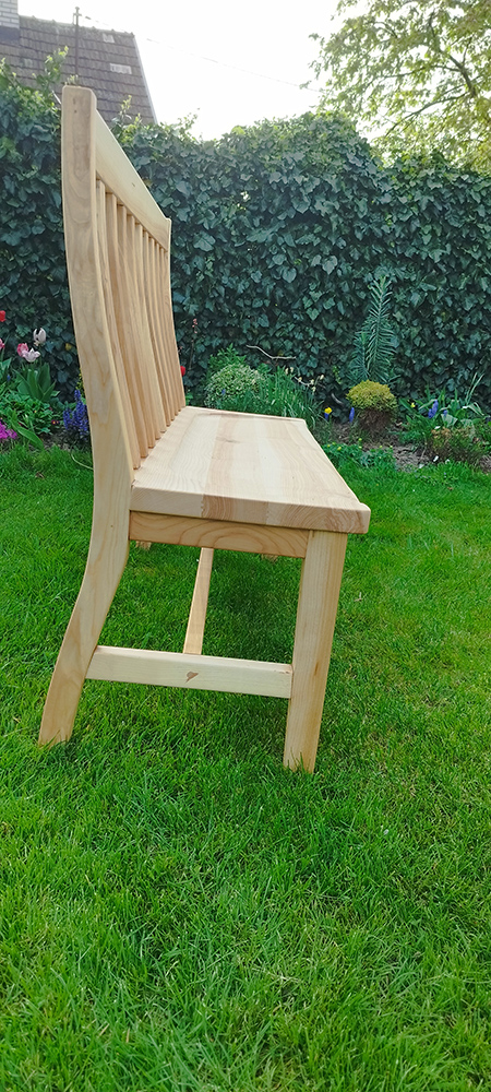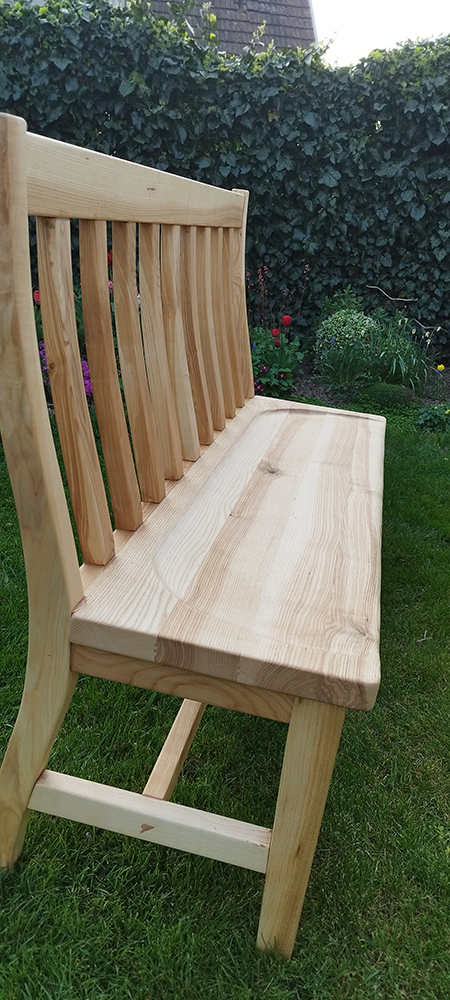 Lavicu som vyrábal s najväčším dôrazom na pohodlné sedenie. Všetky jej časti, či už operadlo, ako aj sedadlo sú vyrobené v oblúkoch.