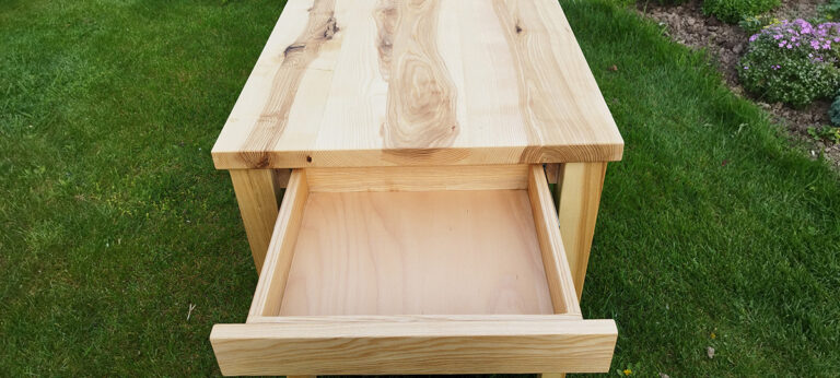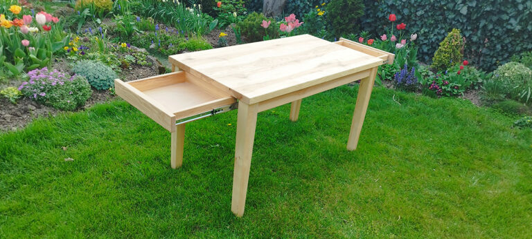 Tradičný vzhľad stola s doplňujúcimi zásuvkami na koncoch stola. Jednoduché prevedenie umocňuje jedinečná kresba dreva.